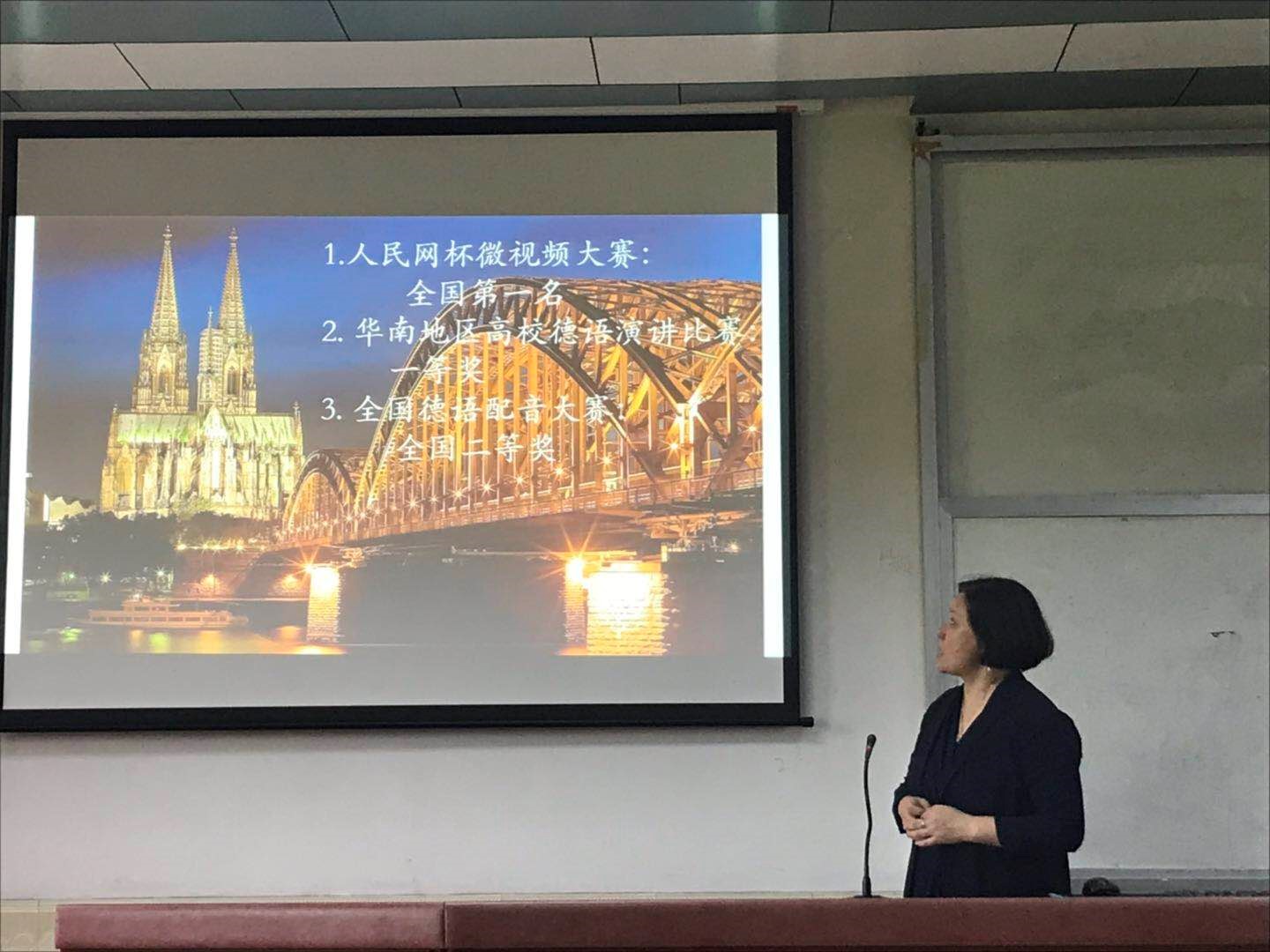 本次交流会由滕奕丹老师主持,经验分享者分别是人民网杯微视频大赛、华南地区高校德语演讲比赛以及全国德语配音大赛的获奖学生代表。交流会正式开始之前,滕奕丹老师首先向同学们介绍了本学年伟德国际betvlctor1946德语系在各类校外专业竞赛中取得的喜人成绩,并赠与获奖代表《德国的诗意旅行》,以表达祝贺之情。