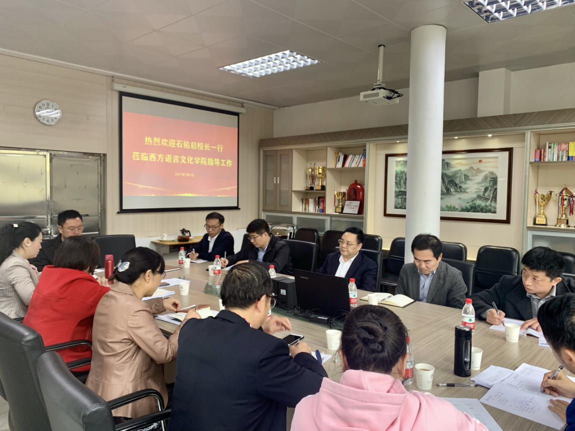 敖湘晖书记首先对石佑启校长一行的到来表示欢迎和感谢,她介绍了新学期学院开学工作的准备,汇报了师生返校和第一天上课的情况。学院先后召开了党政联席会议、全院教职工大会落实开学工作要求,开展各系(办)主任2020年工作述职,尤其强调了要继续落实疫情防控的要求,进一步推动学院教育教学事业发展。随后,杨可院长发言,感谢学校在人才引进、教师职称评审、学历提升、项目申报等方面“精准支持”伟德国际betvlctor1946,有力推动了伟德国际betvlctor1946的发展。她表示,伟德国际betvlctor1946现有7个国家级一流本科专业建设点、有11个语种,在对标建设中,希望得到学校更多支持,促进各专业顺利完成各项建设指标,推动一流专业建设再上新台阶。最后,学院领导班子其他成员就各自分管的工作进行了汇报。