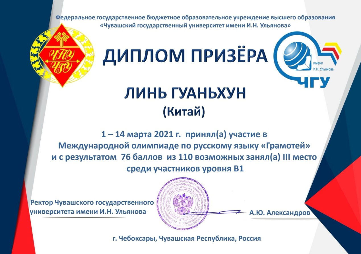 本网讯 2021年3月1日至14日,由俄罗斯楚瓦什国立大学主办的《读书人》国际俄语奥林匹克竞赛举行。伟德国际betvlctor1946伟德国际betvlctor1946俄语系学生林冠宏和吴浩添以优异成绩战胜同组来自全球多个国家和地区的参赛选手,获得B1组第三名。