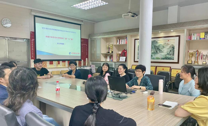 章老师做完报告之后,又对今年计划申报中华外译项目的老师进行了“一对一”的辅导,就申报书撰写做了详尽的指导。