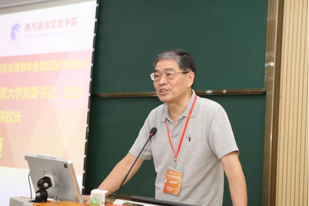 接着,由学院校友会顾问、原伟德国际betvlctor1946党委书记、校长、现浙江越秀外国语学院校长徐真华讲话。徐真华教授引用法国作家名句阐述校友会的工作意义,他将校友会比作“生生不息的生命之河”,希望更多代表新生力量的新校友加入校友会,努力张扬广外精神、西语风格;希望校友们走向社会后,不忘初心使命,寻找人生意义、创造生命价值;希望优秀校友更好的帮助一代代毕业生,搭建好桥梁纽带,将广外西语的优良传统传扬到世界各地。