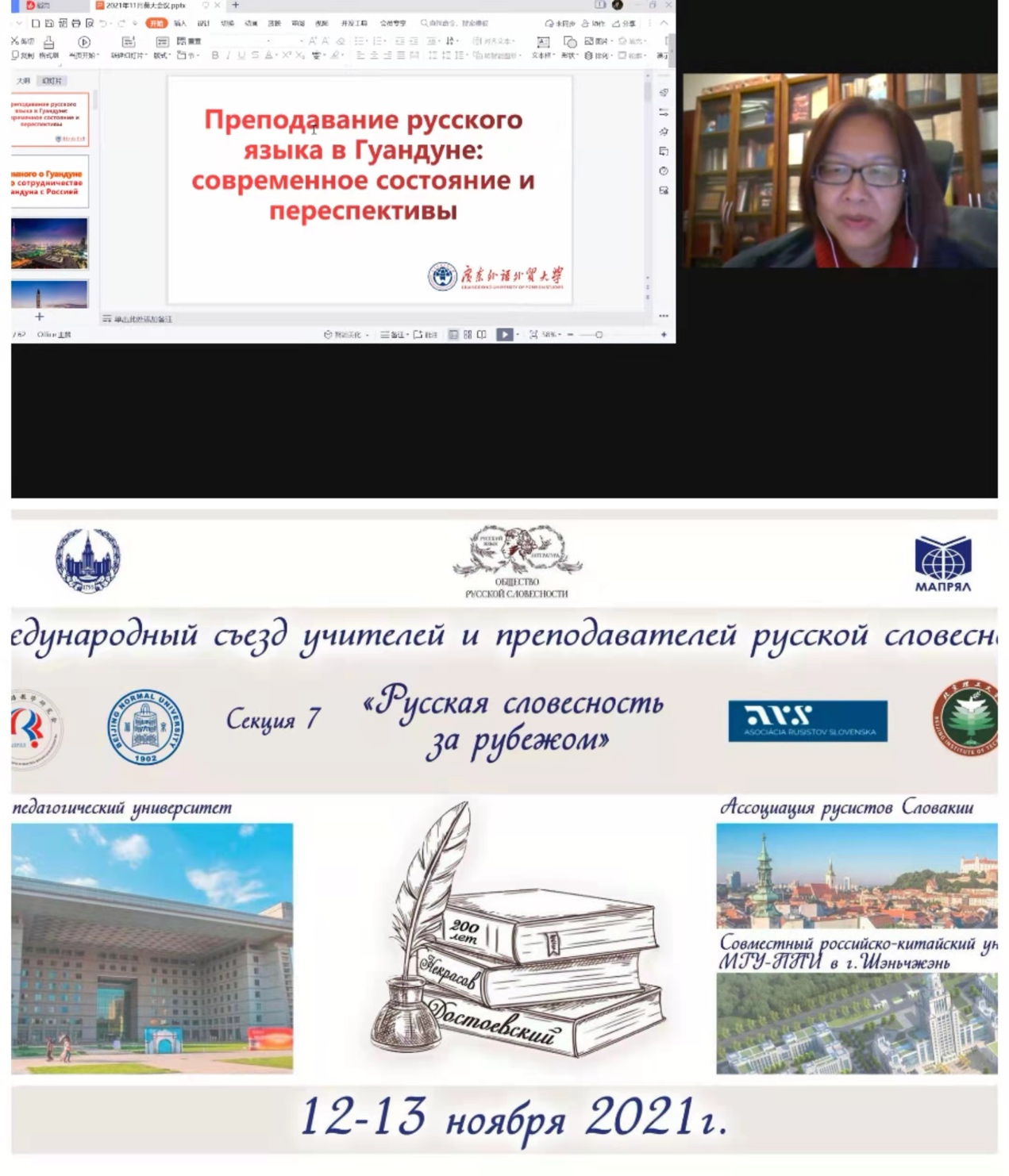2021年11月12日,由莫斯科大学、俄罗斯文学学会和国际俄罗斯语言文学教师协会主办的国际俄罗斯文学教师和教师大会线上举行。