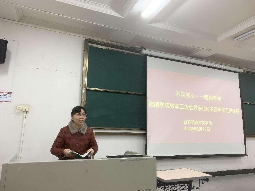 会议伊始,学院各系(办)主任依次进行年度工作述职,分别从党建思政、师资队伍建设、教研科研成果、人才培养、教学活动、外事工作、社会服务、办公室服务、凝聚力建设等方面梳理了过去一年取得的成绩,总结了经验,展望了新学期的工作。