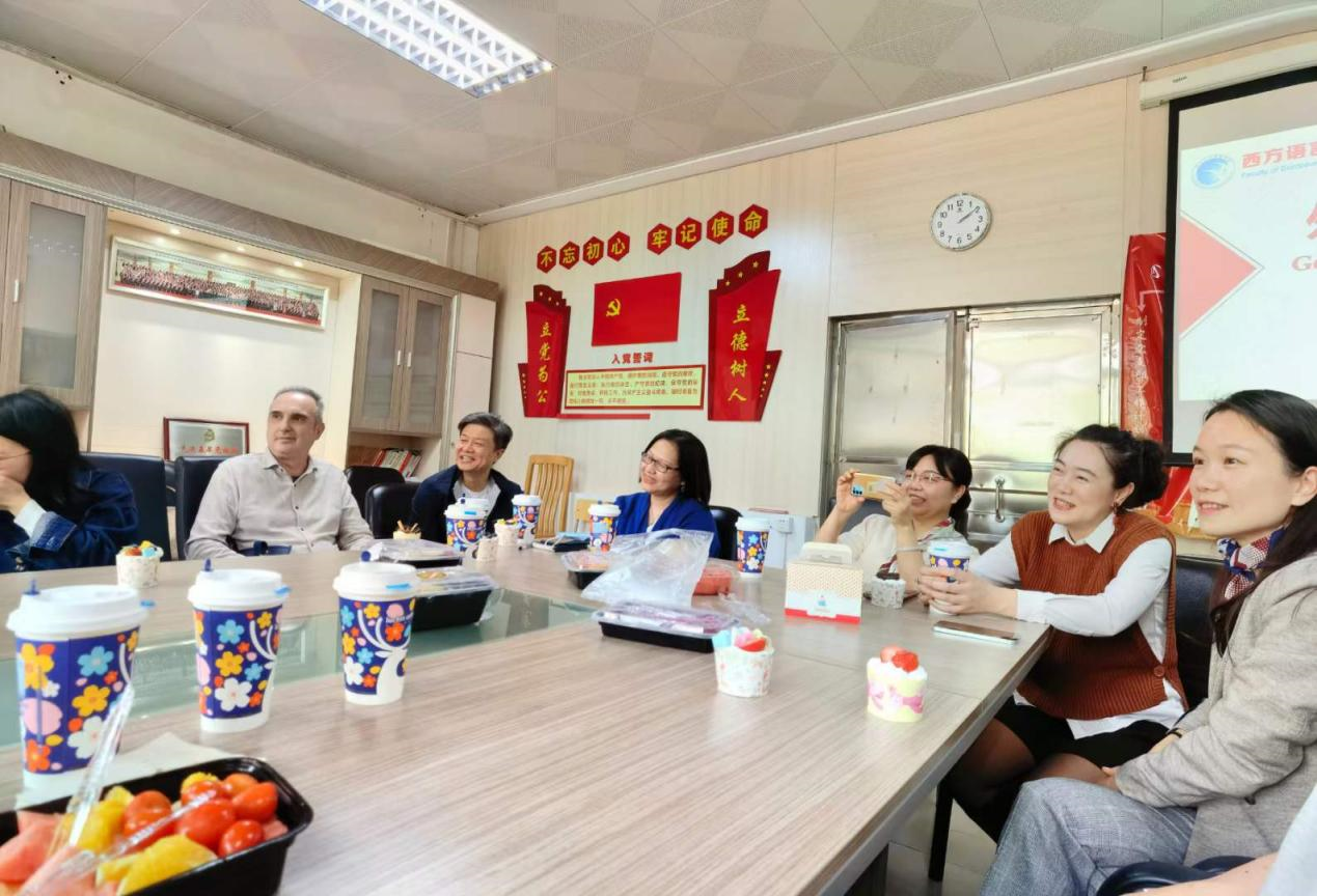 座谈会过程中,德语、俄语、西班牙语、葡萄牙语、捷克语、希腊语、法语等专业的外籍教师先后发言,中国教师翻译,各种语言此起彼伏,欢声笑语不断,其乐融融。