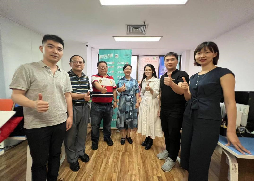 接着,敖湘晖书记带队前往校友企业宇佳教育公司。座谈会上,85级法语校友项晓光和03级法语校友李翠玉详细介绍了公司的特色留学项目,敖湘晖书记介绍了当前学院特色学科建设、人才培养体系和毕业生就业形势,就人才供需对接、拓展实习岗位、平台搭建等进行了交流。