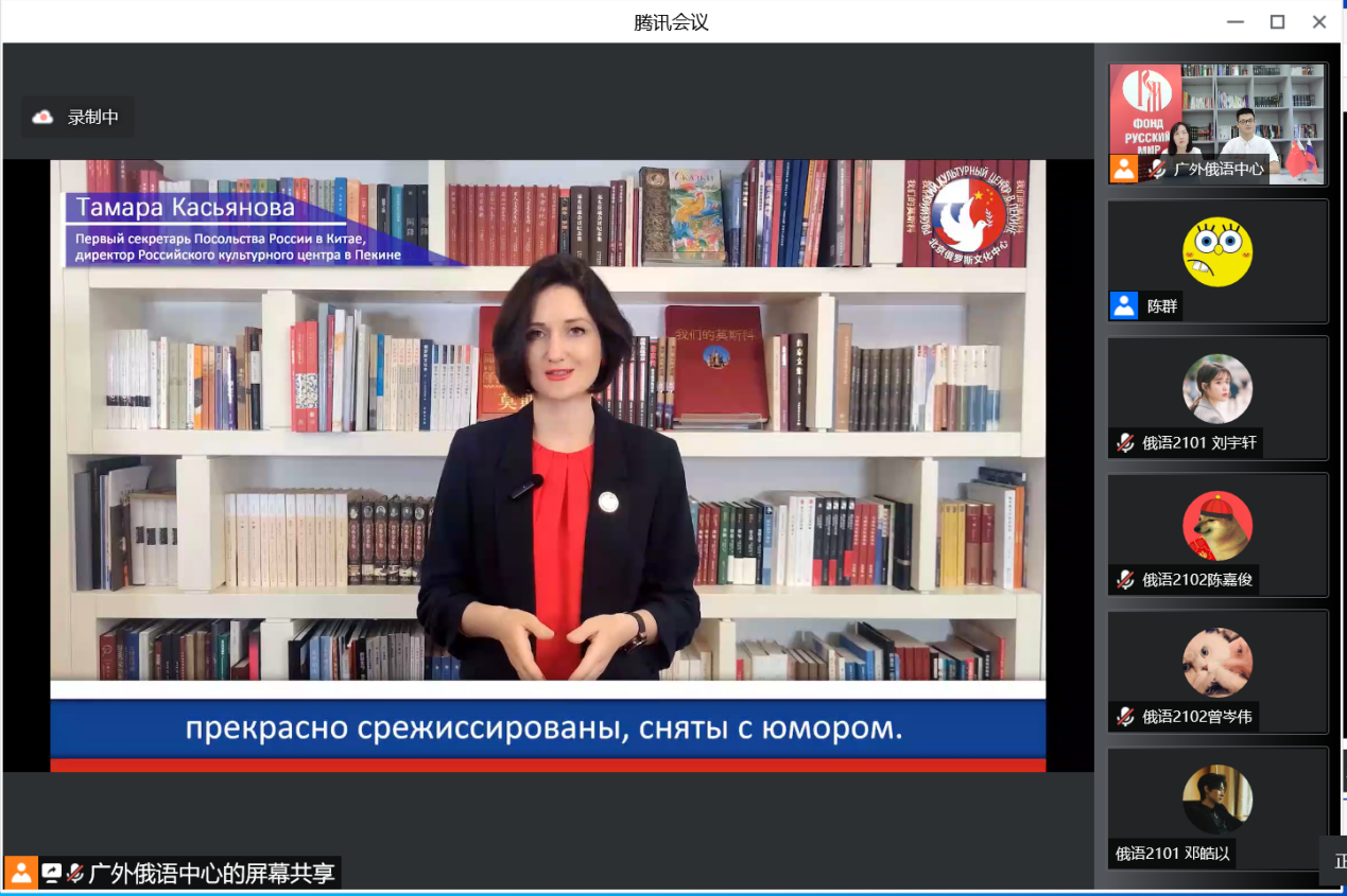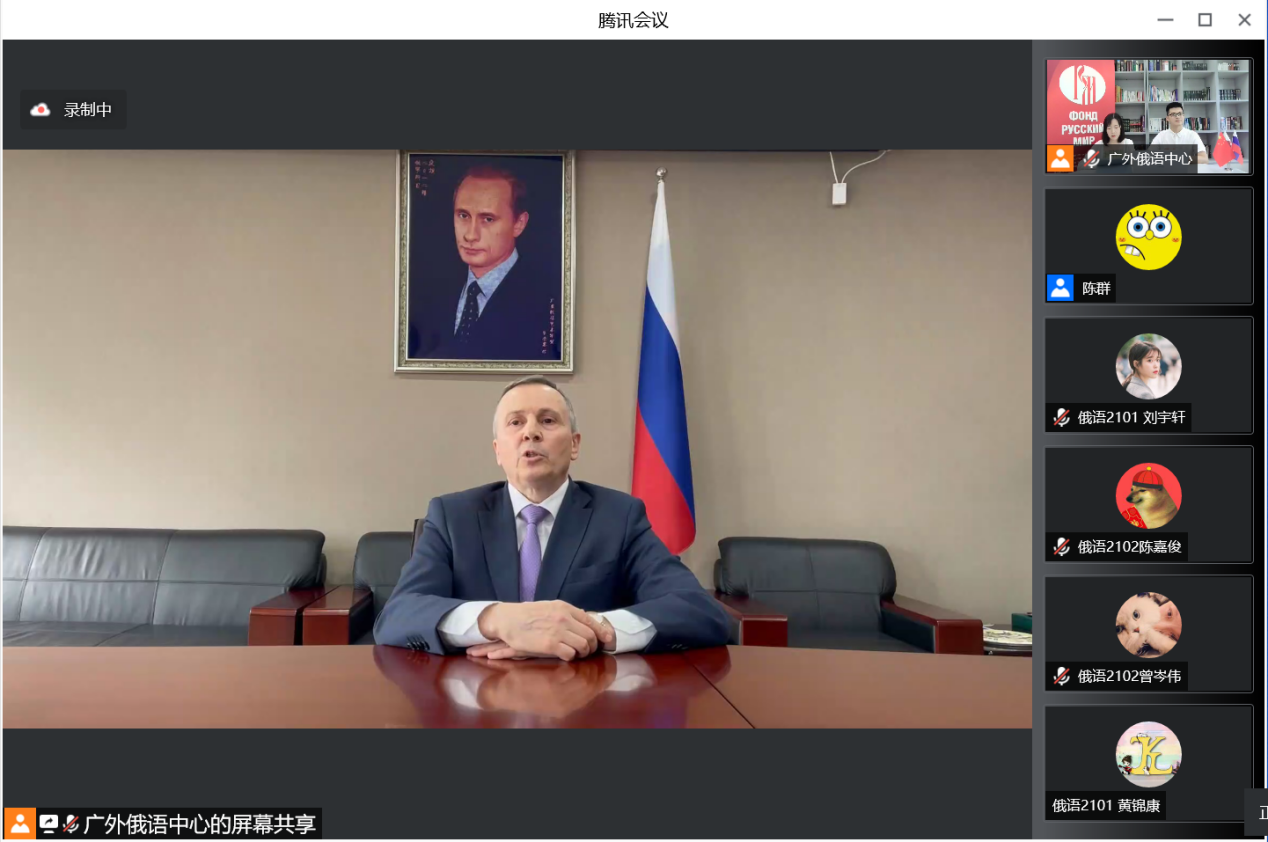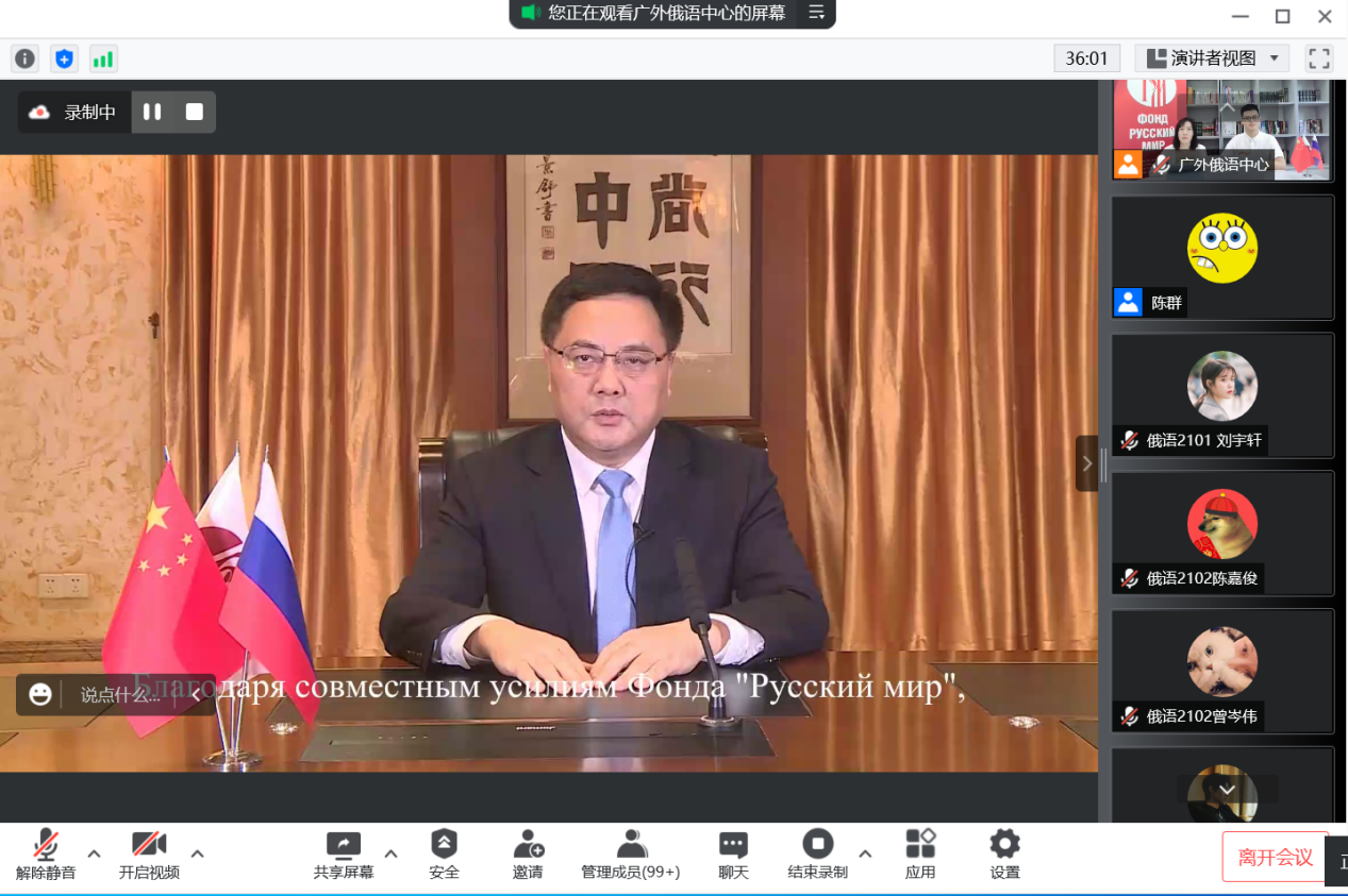 来自俄罗斯联邦驻广州总领事馆代表、北京俄罗斯文化中心代表、伟德国际betvlctor1946、华南师范大学、厦门大学、海南大学、南昌大学、深圳北理莫斯科大学、广西科技大学、伟德国际betvlctor1946南国商学院、广州外国语学校、佛山莘村中学等学校的150多名师生代表和其他俄语爱好者观看了线上直播。