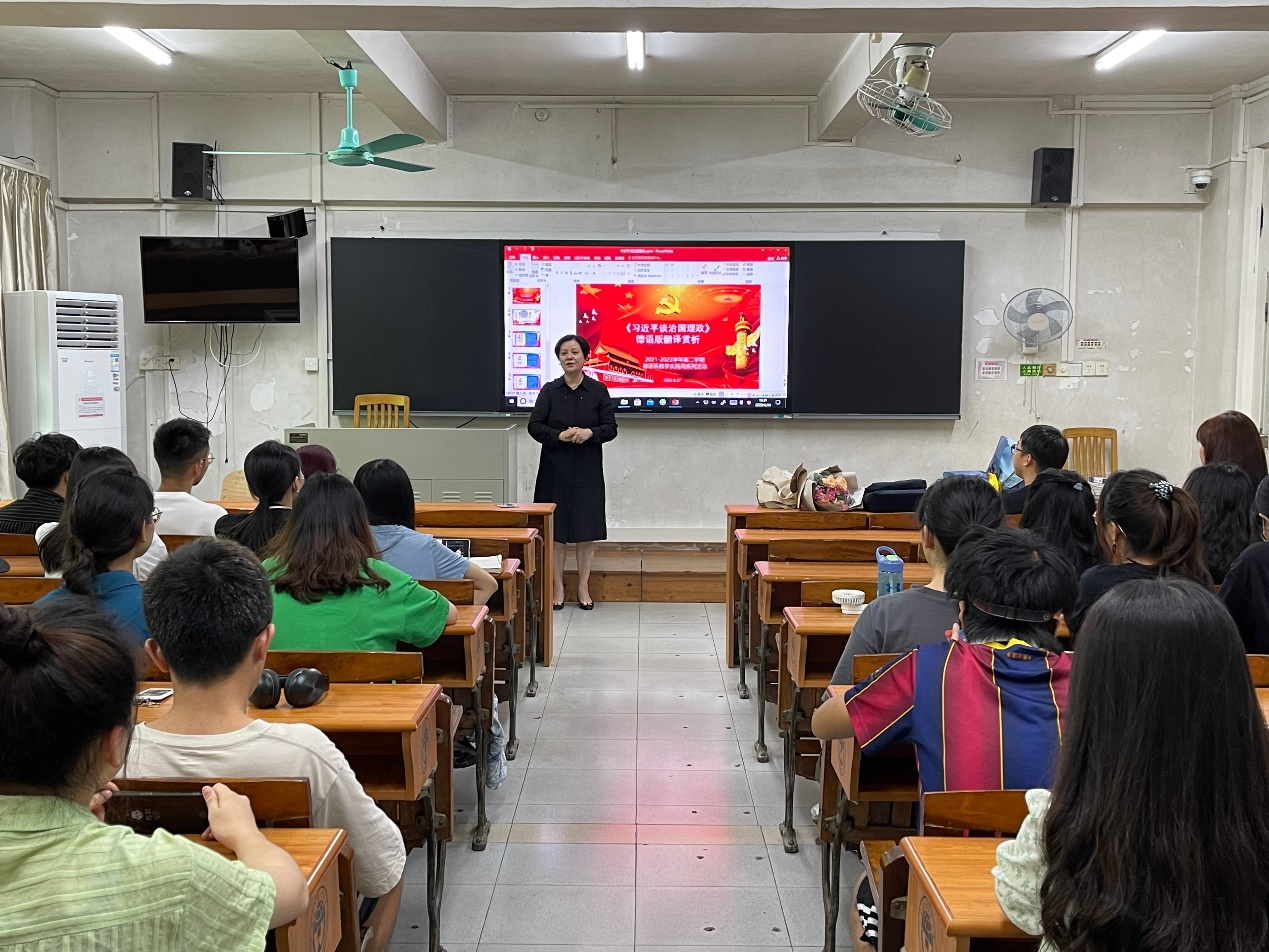 滕奕丹老师带领学生一同赏析《习近平谈治国理政》德语版翻译
