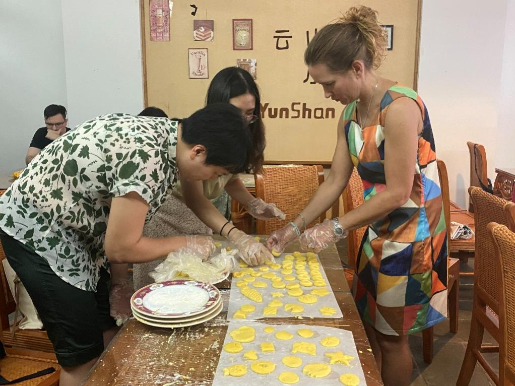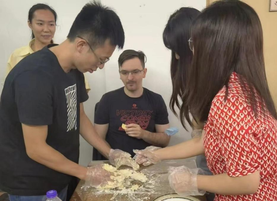 捷克语外教正在与老师们共同制作曲奇