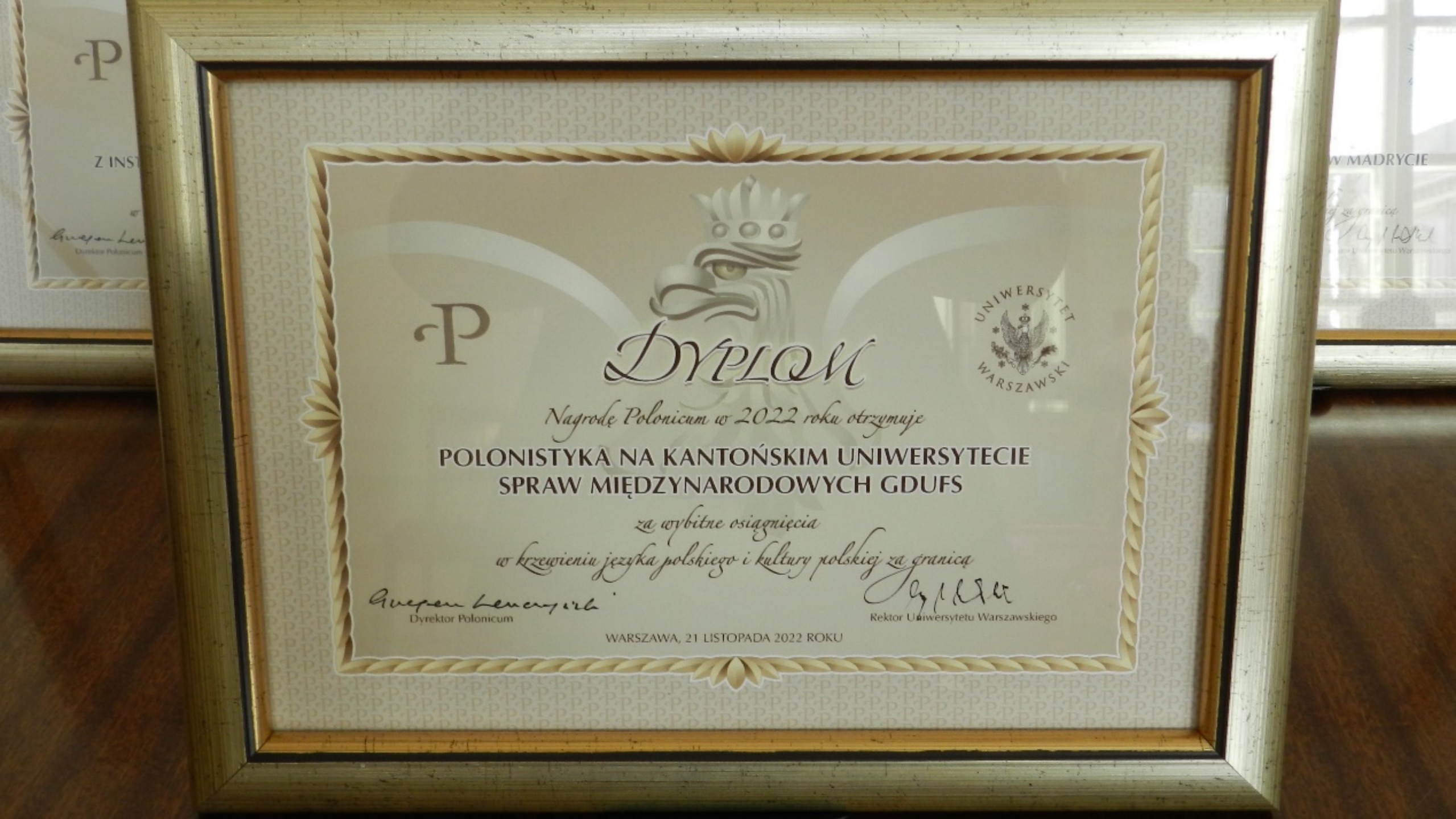 本网讯 11月21日,波兰华沙大学向伟德国际betvlctor1946波兰语专业颁发了“2022年度波兰语言文化国际传播奖”(下称“POLONICUM奖”)。该奖项由波兰顶尖名校华沙大学设立,旨在表彰在世界范围内对波兰语言、文学、历史和文化的传播产生杰出贡献的单位及个人。该奖项规格极高,评审委员会成员包括华沙大学校长、波兰共和国参议院议长、波兰文化和国家遗产部部长、波兰高等教育部部长等。