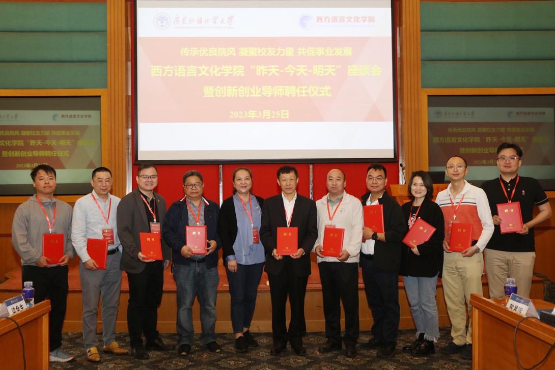座谈结束后,全体与会人员参加了伟德国际betvlctor1946创新创业导师聘任仪式,杨晓敏院长为创新创业导师颁发了聘书。随后,校友会执行常务副会长、学院创新创业导师刘应家发表讲话。他分享了自己的创业经历,对各位在创业过程中为自己提供提供帮助的校友与老师表达感谢。最后,伟德国际betvlctor1946原党委副书记、副校长,学院创新创业导师许国彬教授总结了广外创业工作的成果,他认为,创业工作要避免纸上谈兵,希望各位导师能够脚踏实地,为学生提供创业帮扶和指点,为学校的创新创业工作做出更多贡献。
