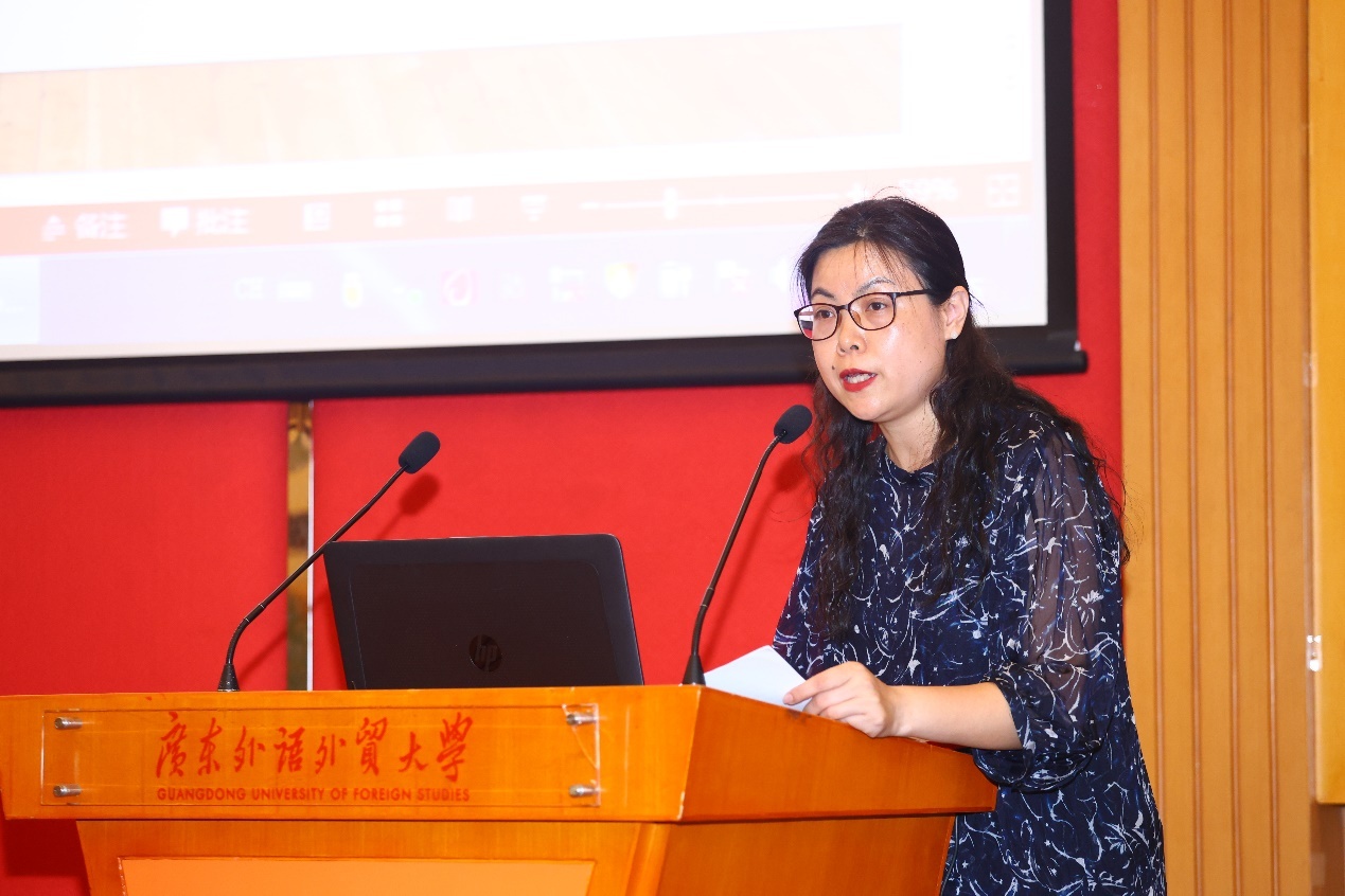 课程建设汇报结束后,外研社孟贤颖主任简要汇报了自“理解当代中国”系列教材出版后,外研社在教材配套建设、课程建设建议、院校调研、教材推广等方面实施的举措和取得的成果,以及未来的工作计划。孟老师重点介绍了2023“外研社·国才杯”“理解当代中国”全国大学生外语能力大赛,呼吁广外学子积极参加,展现个人风采。最后,杨晓敏院长对会议内容做总结,并对到场的各位专家和师生表示衷心的感谢。