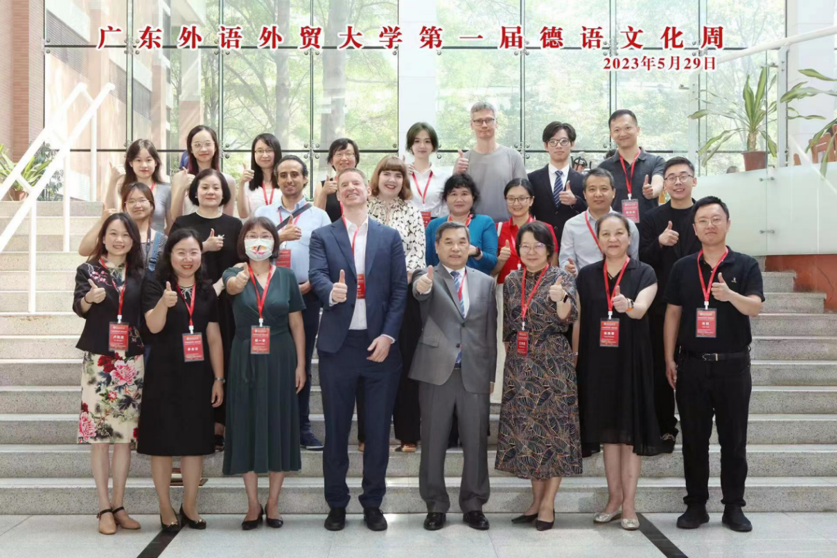 2023年5月29日,伟德国际betvlctor1946首届德语文化周在白云山校区图书馆报告厅开幕。德意志联邦共和国驻广州总领事馆总领事鲁彦先生(Jan Rudolph)、德意志联邦共和国驻广州总领事馆文化与公共事务主任陈一春女士、德国学术交流中心中国首席代表施露丝女士(Ruth Schimanowski)及校内嘉宾伟德国际betvlctor1946副校长焦方太教授、伟德国际betvlctor1946党委王秀民书记、伟德国际betvlctor1946院长、党委副书记杨晓敏教授、人力资源部肖锐副部长、伟德bv1946官方网站合作部徐艺青副部长、伟德国际betvlctor1946副院长卢铭君教授出席开幕式活动。同时参加开幕式活动的还有德语系全体教师与德语专业本科生与研究生。开幕式由德语系主任吴晓钢、DAAD驻校专家Katharina Eberle与2020级本科生王子月、钟栋竞联合主持。