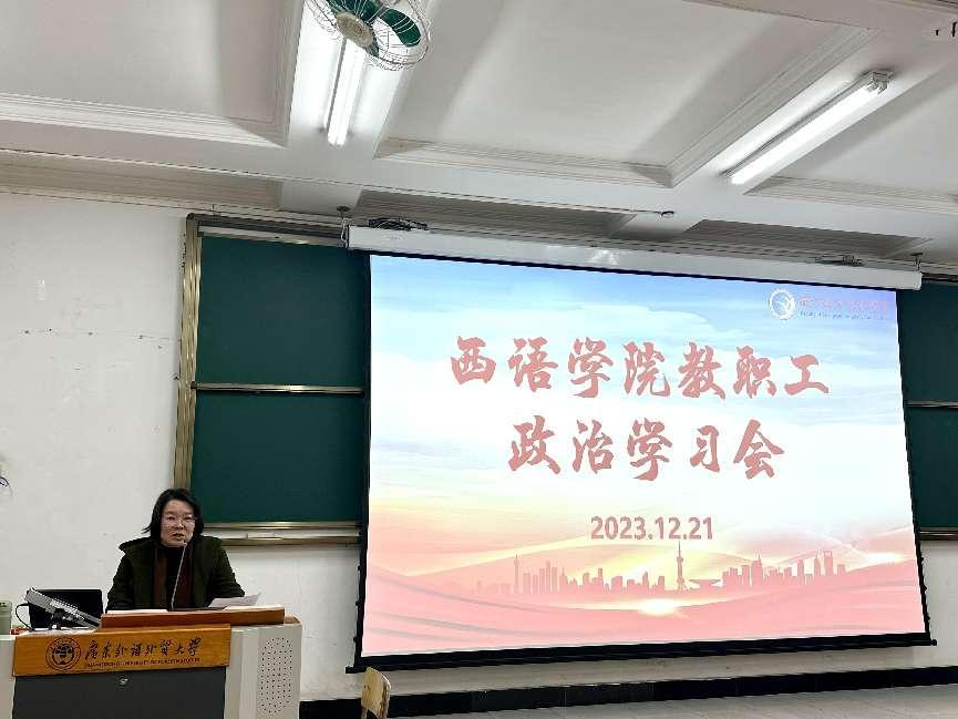 王秀民书记总结到,为深入推进学习习近平新时代中国特色社会主义思想,本期教师政治学习特意安排了中华优秀传统文学的讲座。习近平总书记指出,“中华优秀传统文化是中华民族的精神命脉,是涵养社会主义核心价值观的重要源泉,也是我们在世界文化激荡中站稳脚跟的坚实根基”。此次讲座结合了西方的理论和庄子的思想,从形式到内涵都很好的体现了中国传统哲学的优势。希望全体教职工能够“学贯中西”,在工作和生活中排解压力,赢得幸福,更好的培养有家国情怀、有全球视野、有专业本领,堪当民族复兴大任的高素质外语人才。