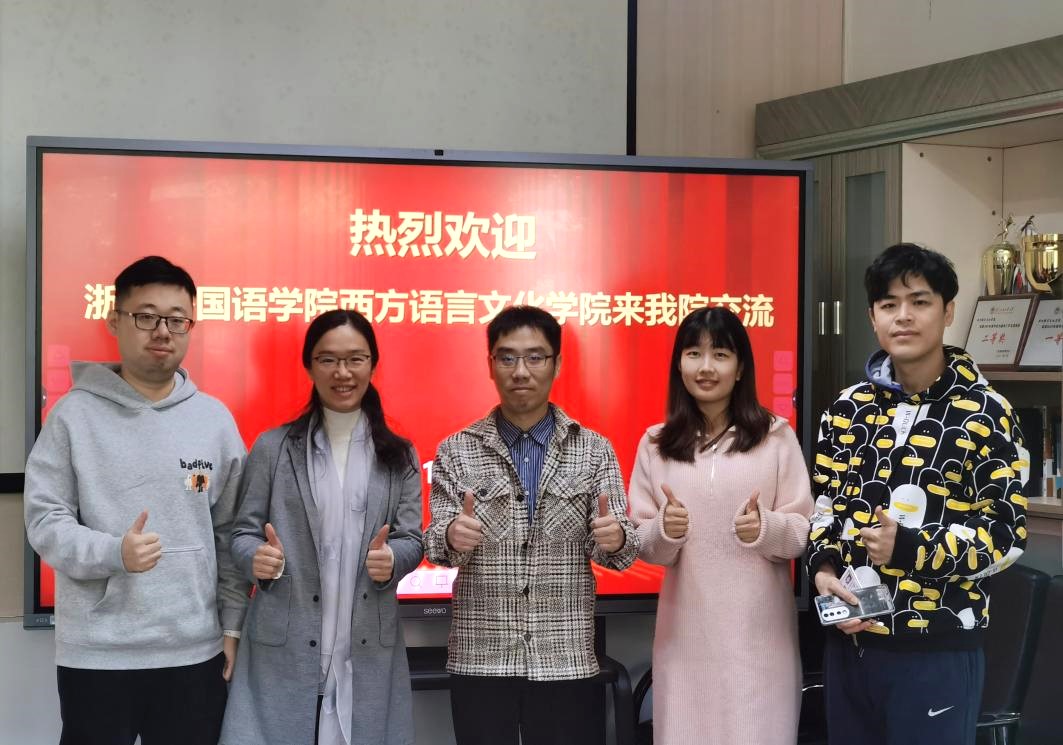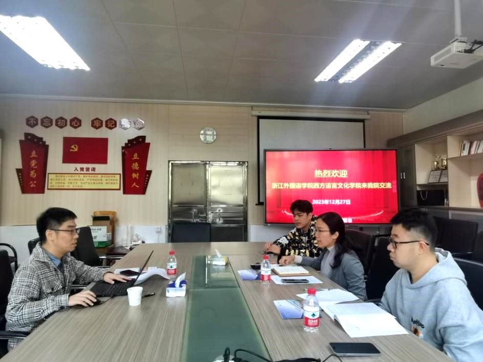 本网讯 12月28日,浙江外国语学院伟德国际betvlctor1946党总支副书记戴力到伟德国际betvlctor1946交流调研学生工作,学院党委副书记魏少娟,辅导员张阳、杨潇、冯迪南参加交流。