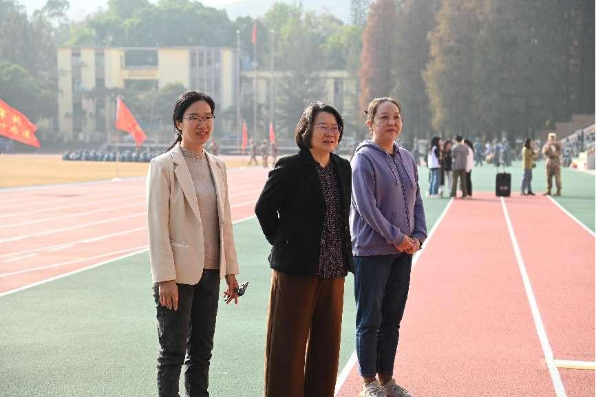 本网讯 1月8日上午,伟德国际betvlctor1946党委书记王秀民、院长杨晓敏、党委副书记魏少娟、辅导员张阳一行来到北校区综合体育场,对正在进行紧张军训的2023级新生及教官们进行慰问。