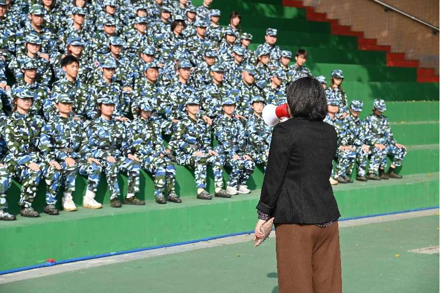 随后,王秀民书记对新生发表了热情洋溢的讲话。她表示,军训是每个新生大学生活的关键一课,也是磨练意志、锻炼身心的重要环节。王秀民赞扬了新生们在军训中所展现出的不畏困难、严循指令的精神品格,并鼓励他们在接下来的训练中保持这种精神风貌。同时,她也希望新生们能够珍惜这次军训的机会,在向教官学习的同时加强自身素质,以实际行动彰显新时代青年的新风采。