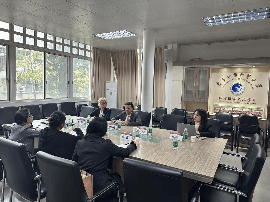 本网讯 2024年3月13日上午,法国克莱蒙商学院校长Richard SOPARNOT先生以及数字传媒和电子商务学士学位项目负责人Delphine RICHAGNEUX女士一同前来伟德国际betvlctor1946进行交流座谈会。随行的访问团队成员还包括宇佳教育总经理项晓光先生及其助理吴穗婷女士。座谈会在伟德国际betvlctor1946院长杨晓敏的主持下进行,法语系相关教师也参与了会议。