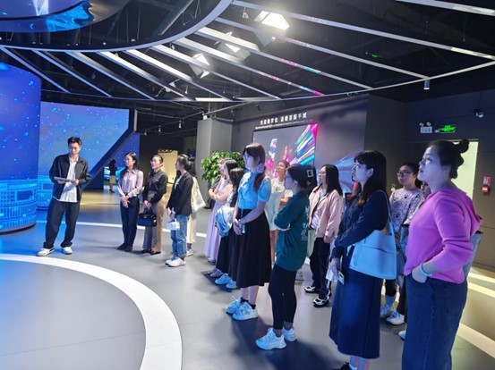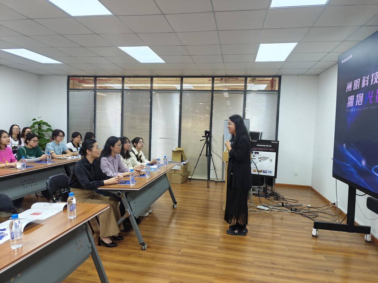 到达目的地后,在洲明员工、伟德国际betvlctor194623届希腊语校友梁健佳的带领下,师生们先是参观了企业的展厅,了解了光显技术的演进历程和洲明产品的经典应用场景,还亲身体验了先进光显技术的魅力。
