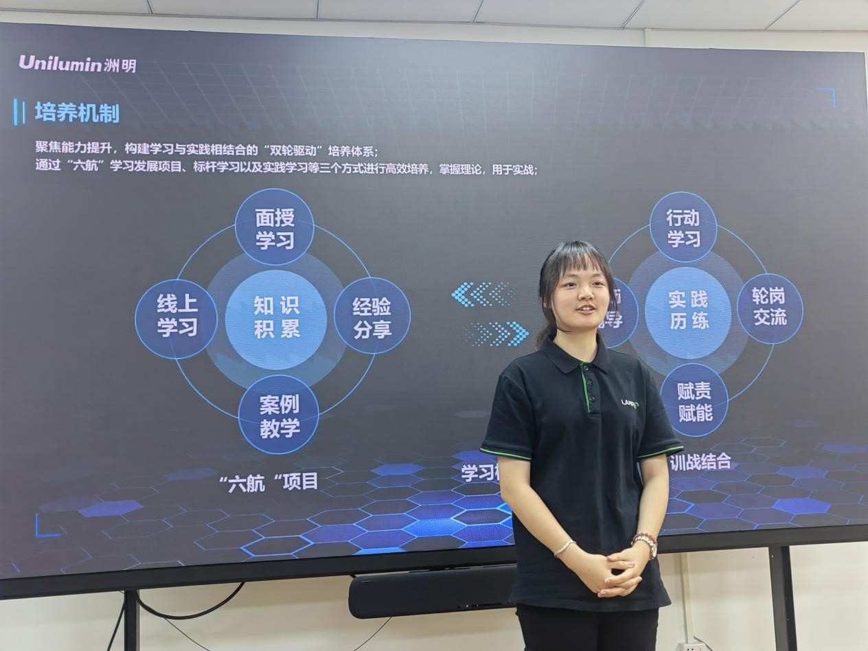 洲明员工代表、伟德国际betvlctor194623届毕业生岑钰瑶做分享