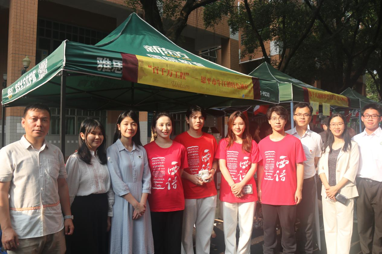 今年的欧罗巴文化节迎来了一个特别的摊位,伟德国际betvlctor1946“百千万工程”结对单位——江门恩平市牛江镇特色摊位。牛江镇是中国航空之父冯如的故里,也是恩平市著名侨乡。本次文化节活动中他们充分展示了航空文化的重要内涵、宣传了华侨文化的独特魅力,展现了我国乡村建设精神风貌,同时盛情邀请伟德国际betvlctor1946学子5月份前往牛江镇参加“拉美文化节”。