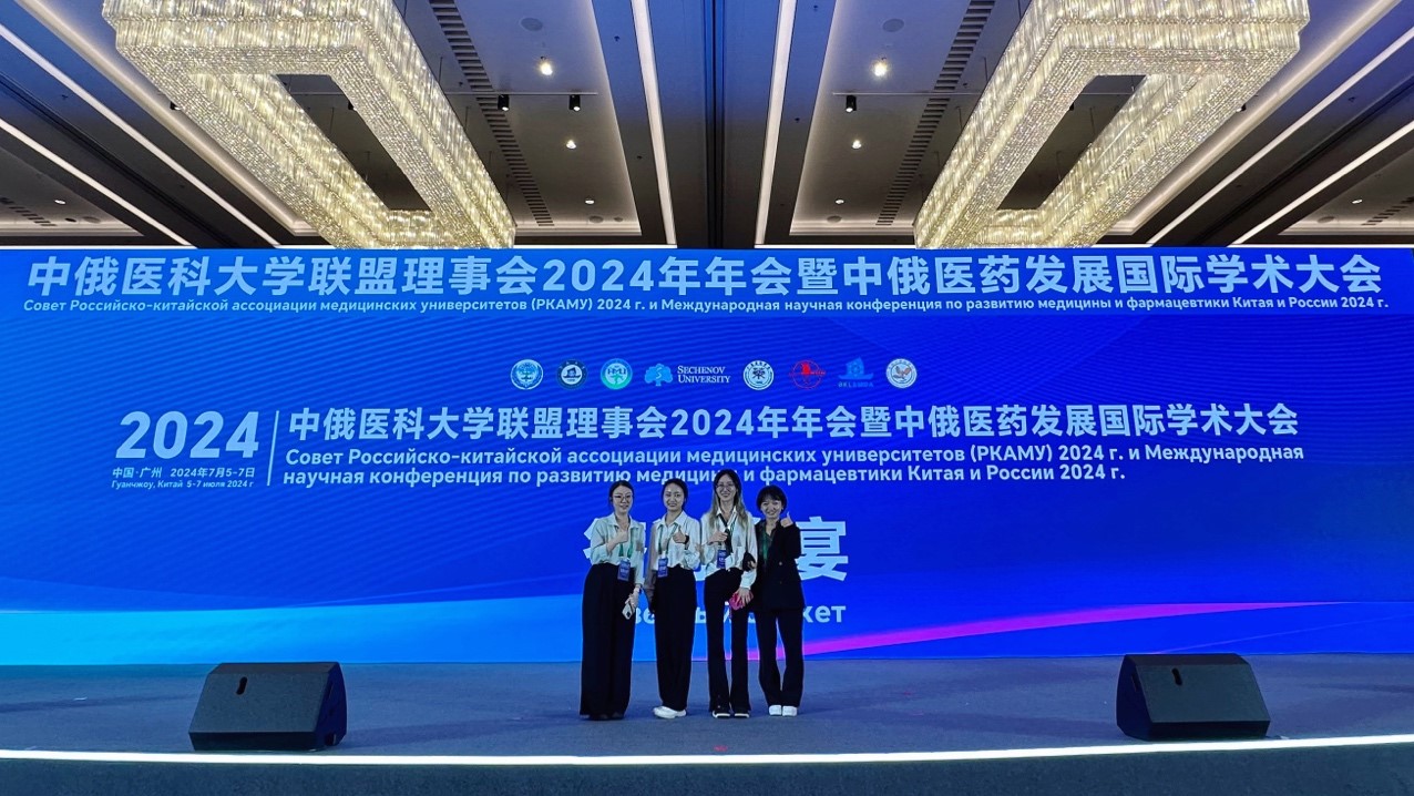 本网讯 2024年7月5-7日,中俄医科大学联盟理事会2024年年会暨中俄医药发展国际学术大会在中国广州顺利举行。本届大会由中俄医科大学联盟主办,暨南大学、哈尔滨医科大学、莫斯科国立第一医科大学、广东省药学会联合承办,暨南大学附属第一医院、生物活性分子与成药性优化全国重点实验室、 暨南大学药学院协办,旨在加强中俄两国医药卫生领域交流合作、开放创新,促进两国在医学科研、人才培养等方面深化合作。来自莫斯科国立第一医科大学、库班国立医科大学、萨拉托夫国立医科大学等17所俄罗斯顶尖医科高校和来自暨南大学、哈尔滨医科大学、中国药学科学院、广东药科大学、广州中医药大学、南方医科大学等多所医学院校、科研院所的专家学者齐聚一堂,出席本次大会。