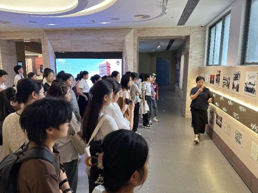在校史馆老师及讲解志愿者的带领下,学生分五批走进校史馆,认真聆听、了解广外发展历程。从六十年代广州外国语学院创校、经历改革开放时期的开拓与进取,再到90年代两校合并、向着建设国际化特色鲜明高水平大学的目标高歌猛进,学生们借助一张张照片及文物,重温广外六十载探索历程,感受着广外在不同的年代、不同的校园,为国家外交外贸及文化交流等事业上做出的贡献。