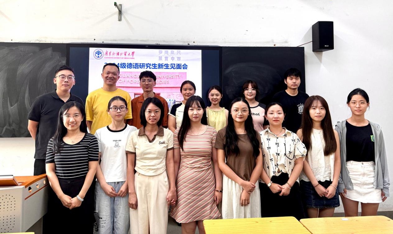 本网讯 2024年9月3日下午,广外德语系2024级硕士研究生新生见面会在第四教学楼116教室举行。见面会由德语系口译专硕点主管崔涛涛老师主持,德语系主任吴晓钢老师、学术硕士点主管贾晨老师以及2024级学硕和专硕全体新生出席会议。