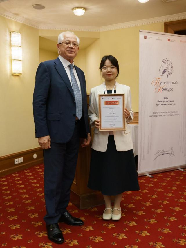 9月7日,第24届国际普希金大赛颁奖典礼在莫斯科隆重举行,伟德国际betvlctor1946俄语语言文学专业博士研究生罗虹春获奖并受邀出席。
