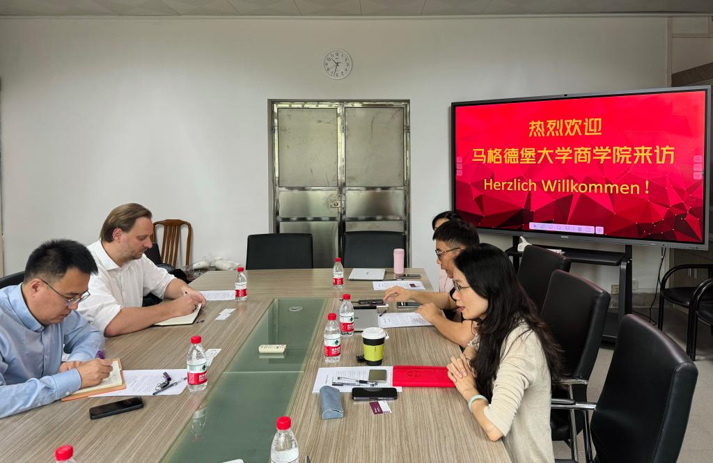 2024年10月23日,德国马格德堡大学商学院负责人Christian Stahr、驻中国代表贺林夫老师和额尔登老师到访伟德国际betvlctor1946,与德语系就国际合作展开交流。副院长卢铭君教授、德语系主任吴晓钢副教授、德语系外事工作负责人黄羽欢副教授、德语系主任助理张思源老师共同接待了来访客人。