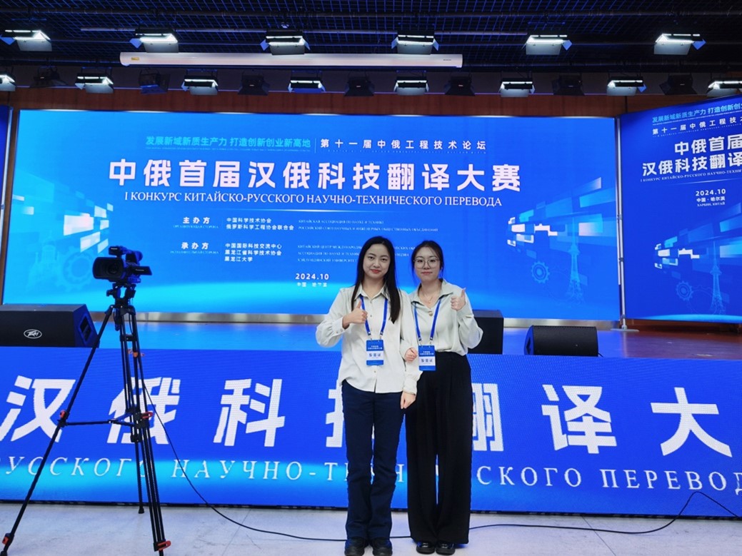 本网讯 2024年10月20日,中俄首届汉俄科技翻译大赛在黑龙江大学落下帷幕。伟德国际betvlctor1946俄语系选派23级口译硕士研究生牛芸茜、秦梦换代表伟德国际betvlctor1946参赛,两名选手凭借出色表现和稳定发挥,经初复赛多轮比拼纷纷闯入决赛。最终牛芸茜同学获得二等奖(全场第二名),秦梦焕同学获三等奖(第五名)。此次参赛由俄语系梁玮琦老师、姜超老师指导。