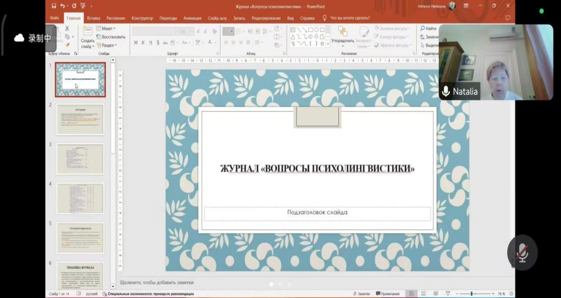 讲座前半段,乌菲姆采娃教授主要讲述了《心理语言学问题》期刊从创刊至今的发展历程,期刊的选题、宗旨以及创刊的主要目标和任务。此外,乌菲姆采娃教授还详细讲解了《心理语言学问题》期刊的主要栏目、发刊周期及投稿标准,并重点强调了投稿的格式、方式及过程。讲座后半段,老师和学生们积极地向乌菲姆采娃教授提问。乌菲姆采娃教授认真倾听,并详细且耐心地解答老师和同学们的问题。所有师生表示收获颇丰,受益良多。