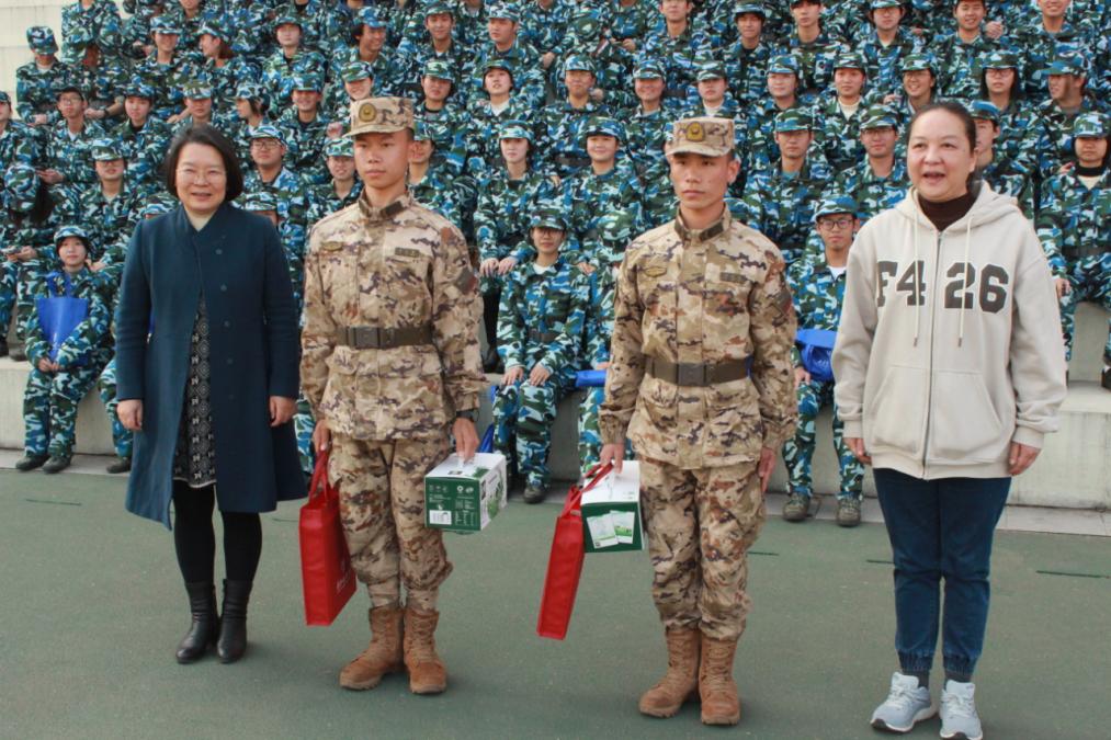 学院领导向教官与学生代表发放慰问品