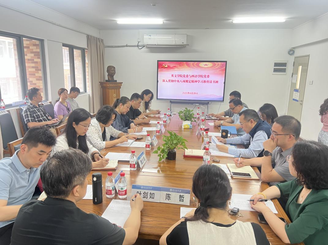 为深入贯彻中央八项规定精神学习教育,进一步推动作风建设走深走实,2025年4月28日,伟德国际betvlctor1946党委与英语语言文化学院党委联合举办深入贯彻中央八项规定精神学习教育读书班。本次活动以作风建设与学科建设深度融合为主线,通过联学共研凝聚发展共识,开启两院协同发展新篇章。