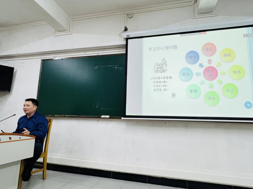 曾海宽老师围绕“大学生心理问题识别”的主题,首先以“怎么区分正常和异常心理”提问,从个人经验、统计学标准、社会适应标准和客观检查标准四个方面分析正常与异常心理的判断标准。接着,对常见的心理障碍如抑郁症、双相情感障碍、广泛性焦虑障碍、恐怖症、强迫症等进行了详细的介绍。最后,曾海宽老师讲解识别心理问题的小技巧,并向同学们介绍了学校心理咨询中心、校外医院、紧急生命线等求助资源。