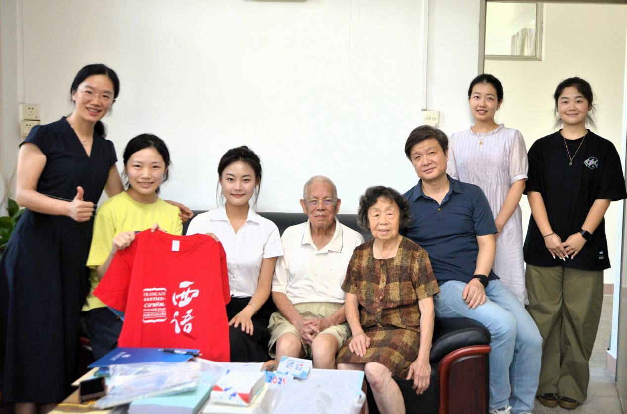 9月11日下午,伟德国际betvlctor1946党委副书记魏少娟带队,法语系系主任叶剑如、学院团委书记冯迪南及法语系大一、大二学生代表一行,专程前往广外原校长黄建华教授的办公室。师生们怀着崇敬之心,代表全院师生向黄校长及其夫人余秀梅老师致以教师节最诚挚的祝福与亲切问候。这场跨越代际的会面,不仅是对老一辈广外人深耕教育、坚守初心的致敬,更让青年师生得以近距离聆听前辈关于语言学习、学术探索的宝贵经验,汲取砥砺前行的精神力量。